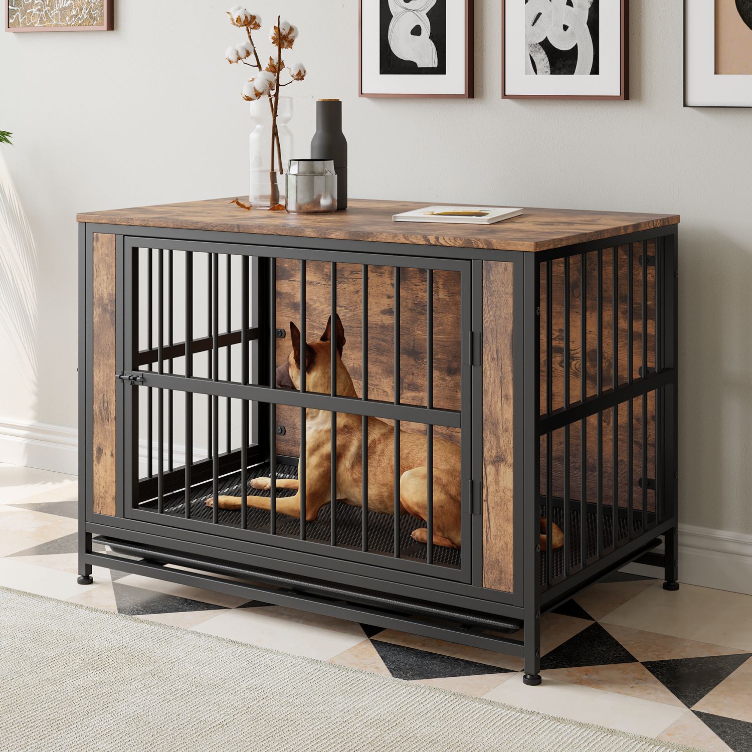[Sturdy and Chew-Resistant]]The dog crate furniture is made of high-strength steel metal pipe and durable P2 grade high-quality MDF, which is stable and easy to care for. It is stronger and more chew-resistant than wire and wooden dog crates, providing your friend with a long-lasting, stable and safe place to rest.