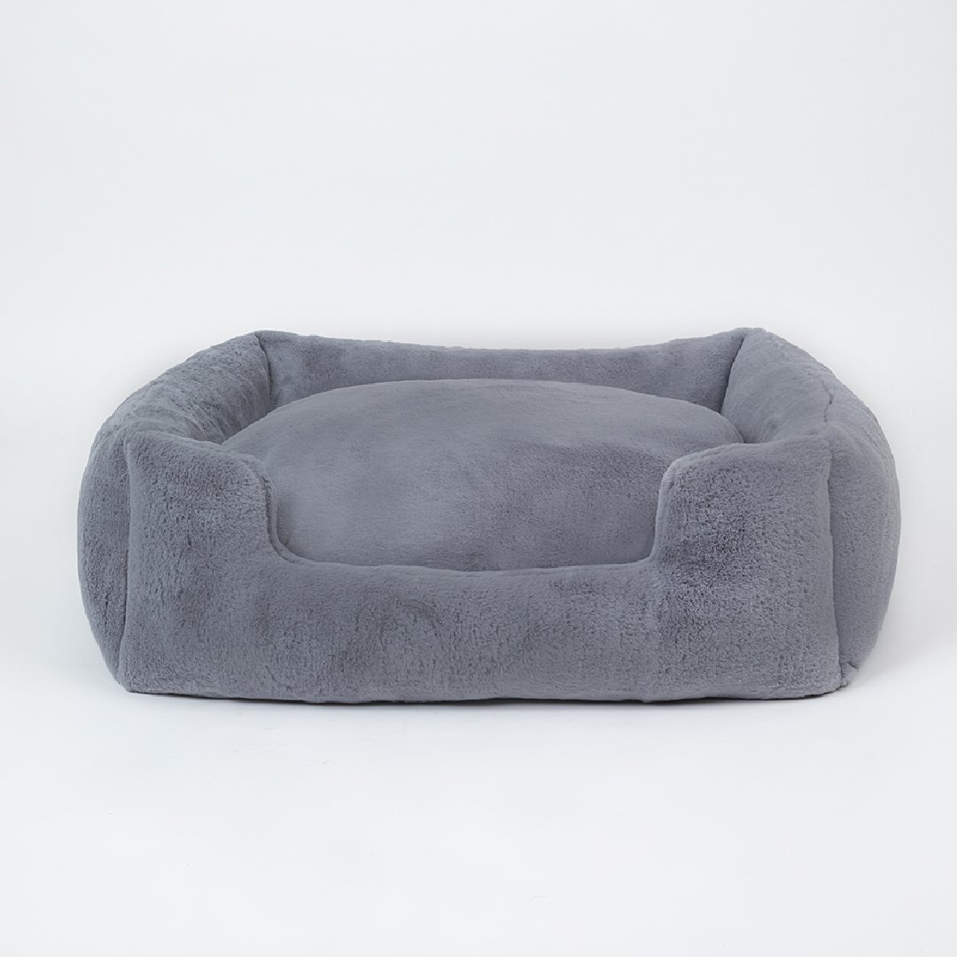 Your large fur baby isn't just a pet, they're royalty! Treat your pup like the king and queen with our new Big Baby Collection by Hello Doggie. This collections offers your pooch their own luxurious bed, where they can snooze away in comfort with plenty of room to stretch out and relax. Made from soft plush fabric and 100% poly-fiber fill, this bed features a non slip floor to hold the bed in place and a removable pillow for easy care. Wash on gentle cycle, no fabric softener or bleach. Air dry or tumble on low.   One Size   - For dogs up to 50 - 70 lbs  Outside - 37" L x 30" W x 10" H   |   Inside - 25" L x 21" W x 6" H |    Bolster - 6"in MSRP - $286.00 *Bed is handmade in the USA and sizes may vary slightly. Made in USA.