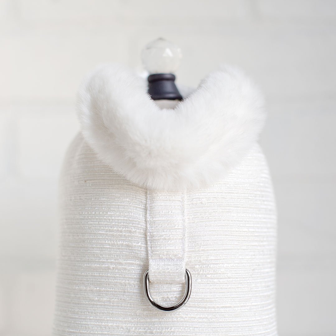 Your precious pooch will look regal in the Zha  Zha (Ja-Ja) Dog Coat by Hello Doggie. Our new coat collection was released just in time for the fall/winter season. When designing this coat we had the pooch in mind, our fur babies get cold too while they're out on the town for holiday shopping or a walk in the park. The coats are made from a beautiful soft tweed blend fabric and are lined with faux fur for a timeless design  and to keep out that extra chill. These coats are perfect to pair up with your favorite Hello Doggie sweater, featuring adjustable velcro straps for a perfect fit when adding layers. It is easy to care for, delicate wash with no softener or bleach and air dry. Our coats are fashionable and most importantly comfortable to wear. Each Coat has a matching harness, sold separately. Limited Edition MSRP $84.00 * Coats are handmade sizes may vary slightly. Made in the USA.
